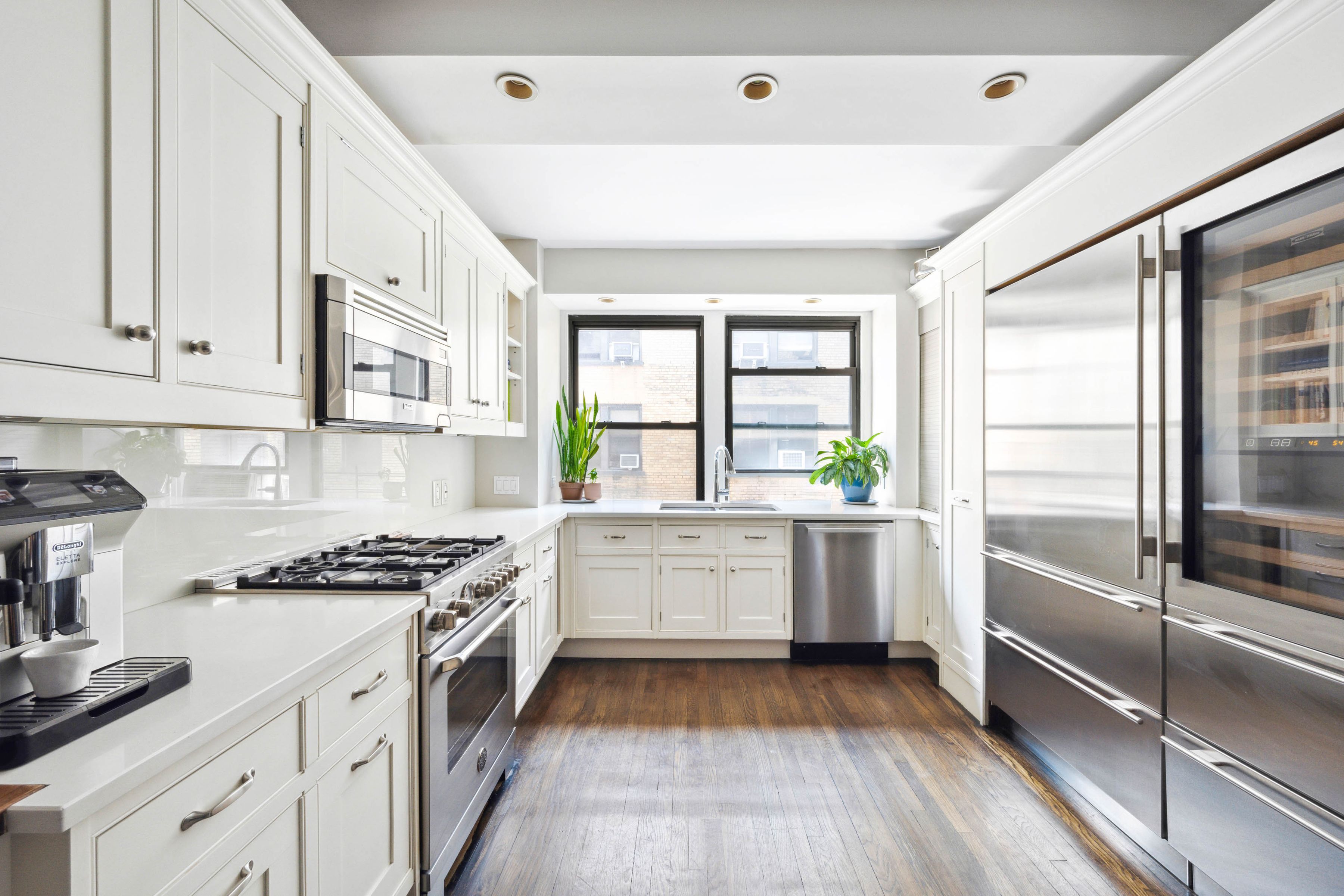 Perched on the 18th floor above Lenox Hill, one of the Upper East Side's most coveted areas, this exceptional home offers expansive outdoor space and sweeping skyline views. Originally two separate apartments, the A and B lines were thoughtfully combined into a spacious three-bedroom residence with triple exposures. A gut renovation transformed the residence with a newly appointed kitchen, two beautiful bathrooms, upgraded electrical, and the addition of an in-unit washer/dryer. The windowed chef's kitchen is outfitted with Smallbone cabinetry, custom storage, and a double sink, alongside a Bertazzoni range, Sub-Zero refrigerator and wine fridge, Viking microwave, and Miele dishwasher. One of two wood-burning fireplaces is seamlessly integrated into the dining area. The second fireplace anchors the living room, where northwest exposures frame unobstructed skyline and sunset views. Exit onto the wraparound terrace, an extraordinary luxury that lets you take in both sunrise and sunset from your own home. The bedroom wing is privately positioned away from the entertaining areas. The primary suite opens onto the outdoor space and includes a five-fixture bathroom. The secondary bedroom features custom millwork and built-in bookshelves by Little Wolf. The third room is a windowed home office with a built-in Italian-made Murphy bed, offering flexibility as a guest room or optional third bedroom. 205 East 78th Street is a classic Art Deco cooperative. Residents enjoy a 24-hour doorman, live-in superintendent, laundry room, bike room, and rentable private storage. Building highlights include: - Maintenance includes electricity and gas - Subletting permitted for up to two years total, with one-year renewals - Pied-a-terre, co-purchasing, and guarantors permitted Located moments from Central Park, the Metropolitan Museum of Art, Madison Avenue shopping, and multiple transportation options, the location places the best of the Upper East Side within easy reach. Additional notes: - Capital assessment of $932/month through December 2026 - 2% flip tax (or $20 per share, whichever is greater)