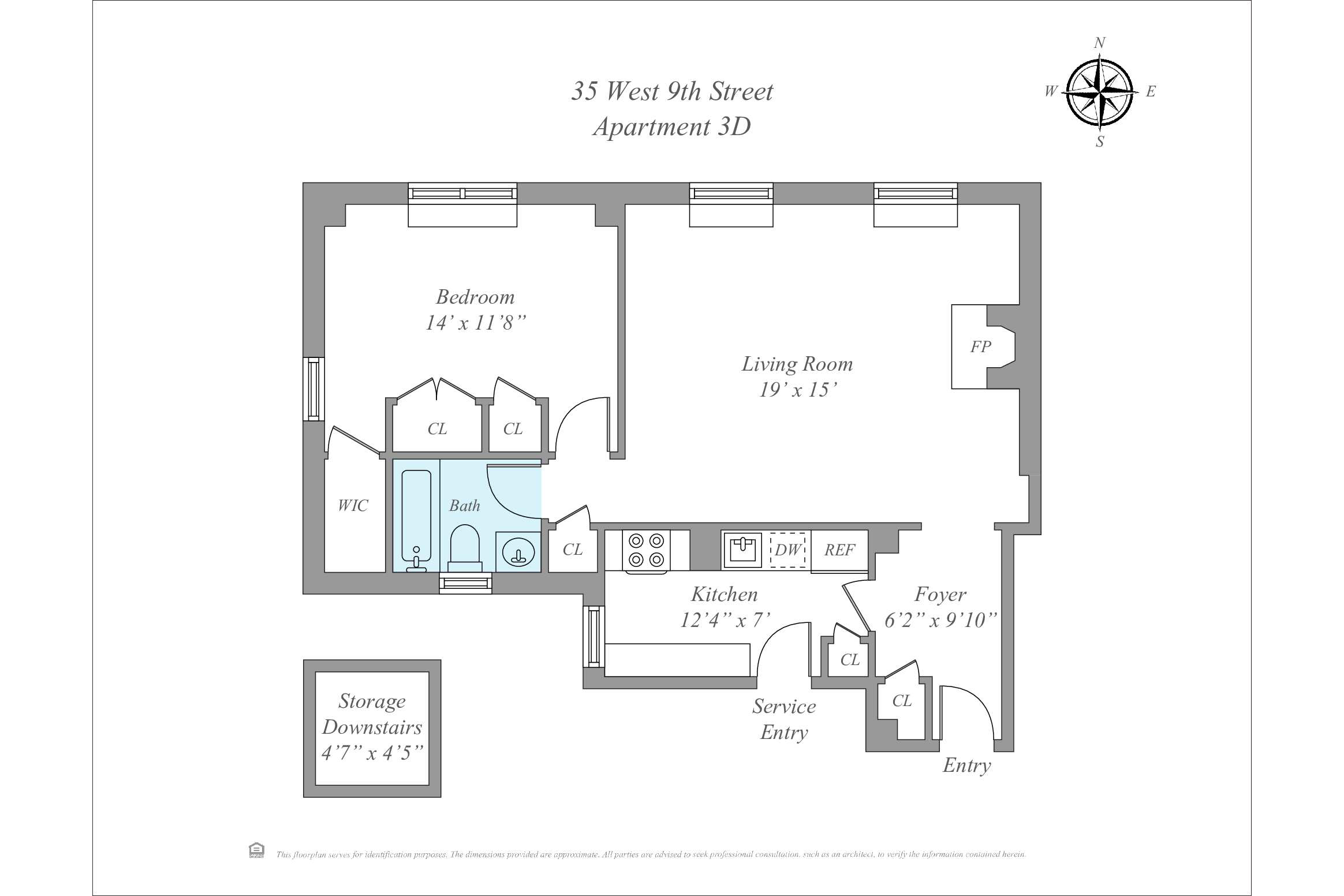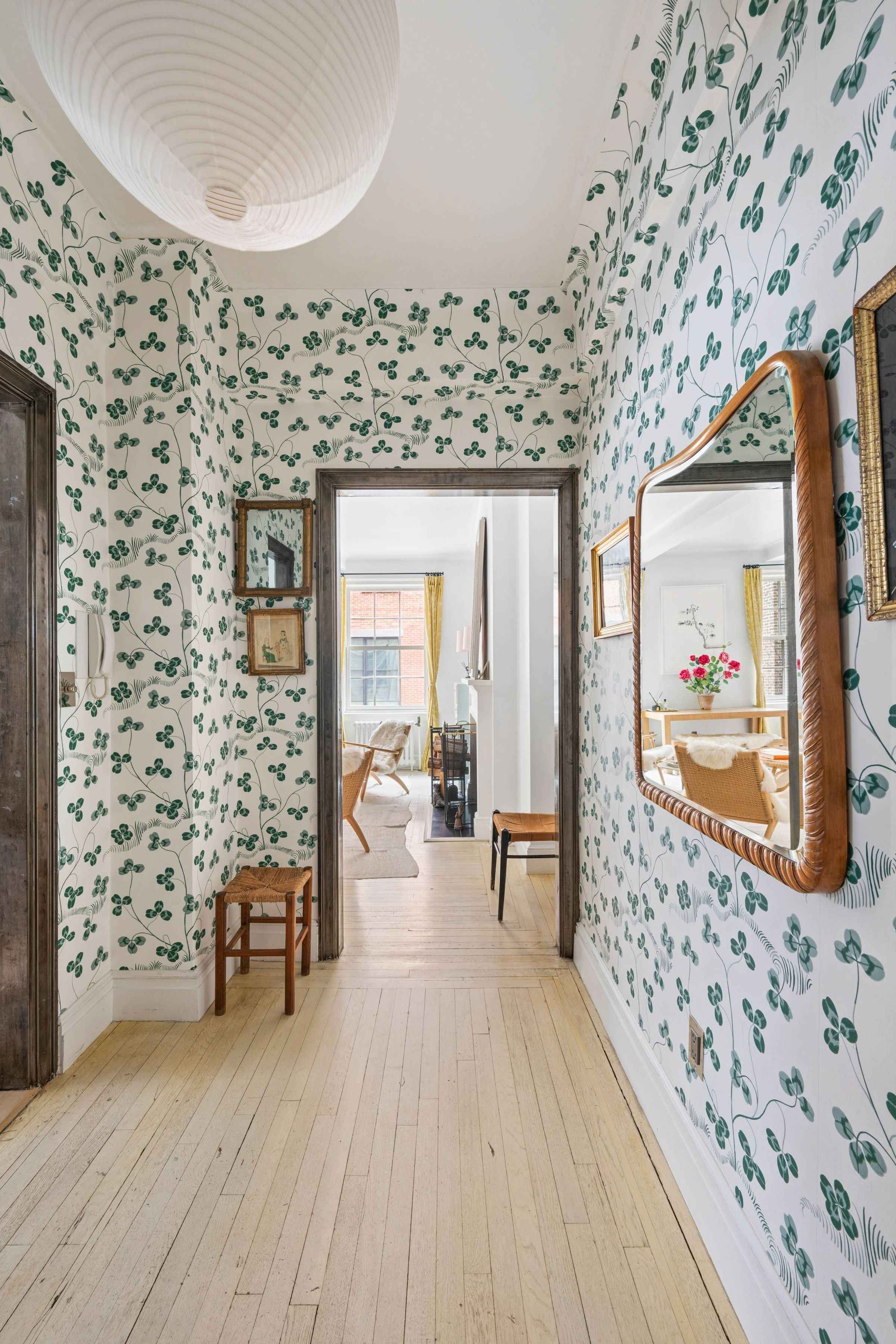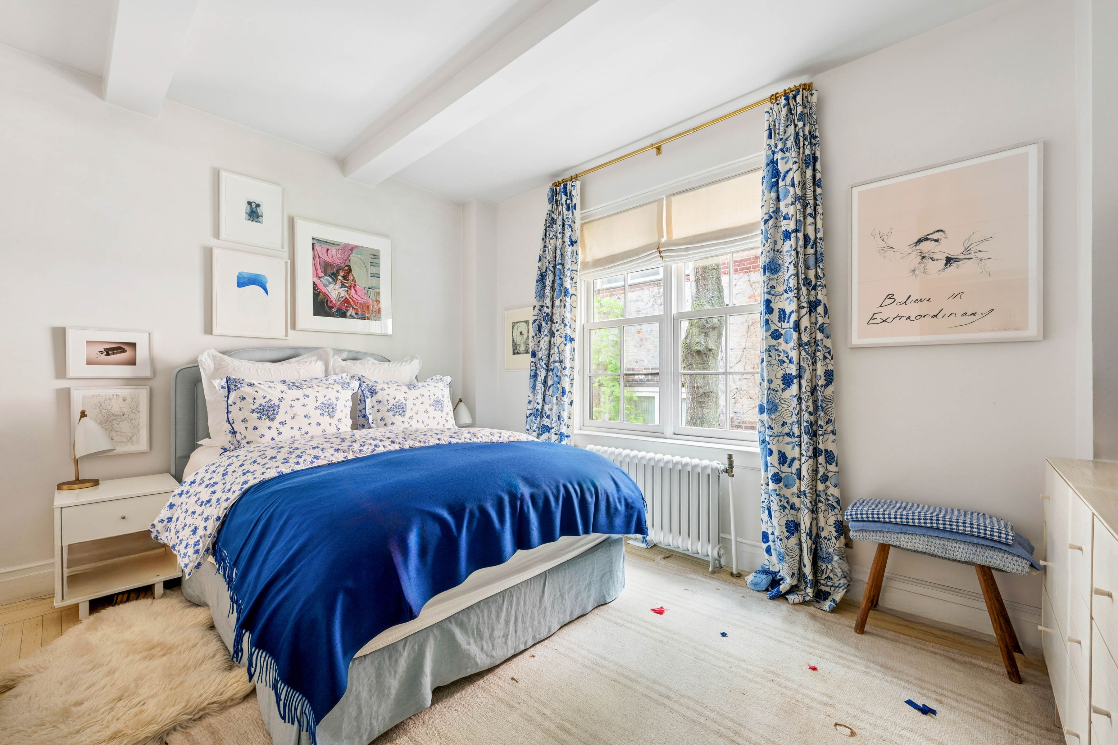 A chicly renovated and unusually spacious one-bedroom in the heart of Greenwich Village's Gold Coast. This thoughtfully designed home blends classic prewar character with a warm, modern sensibility, offering an elevated take on downtown living within a full-service building. A proper entry foyer sets the tone, creating a true sense of arrival. The living room is generously scaled for a one-bedroom, anchored by a wood-burning fireplace and custom built-in bookcases--and enjoys a quiet, private feel. The proportions throughout are exceptional, delivering a sense of volume and ease rarely found at this level. The windowed kitchen is both refined and highly functional, featuring white oak chevron floors, ample cabinetry, and a suite of high-end appliances. The bathroom is finished entirely in Waterworks and includes both a soaking tub and window. The bedroom is serene and well-proportioned, complete with custom built-ins and an additional closet. Thoughtful details throughout include: - White oak chevron flooring and restored, bleached original hardwood floors - Viking range and microwave, Liebherr refrigerator - Shaw's England sink with Waterworks faucet - Library sconces from Galerie des Lampes, Paris - Pierre Frey "Le Manach L'Arbre Indien" wallpaper (bath) - Josef Frank "Kloverblad" wallpaper (foyer) - Forbes & Lomax switches and outlets 35 West 9th Street is a full-service prewar cooperative with doorman and live-in superintendent, moments from Washington Square Park and the best of downtown dining and shopping. The building permits pieds-a-terre on a case-by-case basis. Building amenities include storage and laundry room. There is a 1% transfer fee.